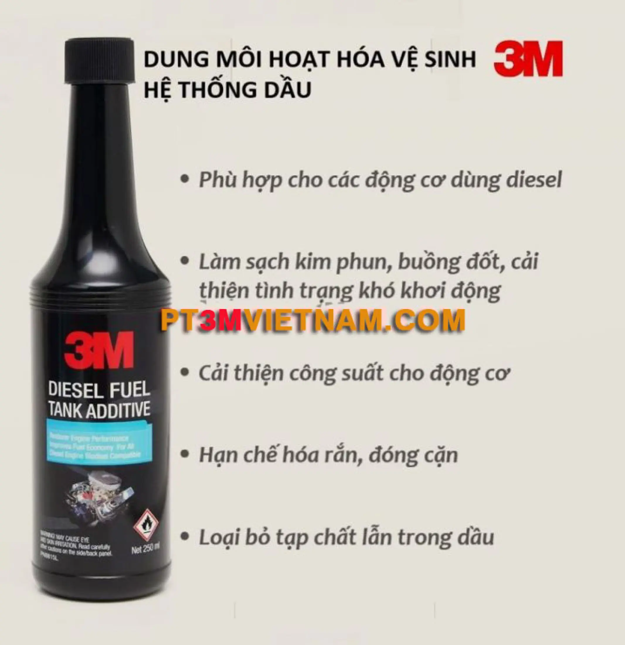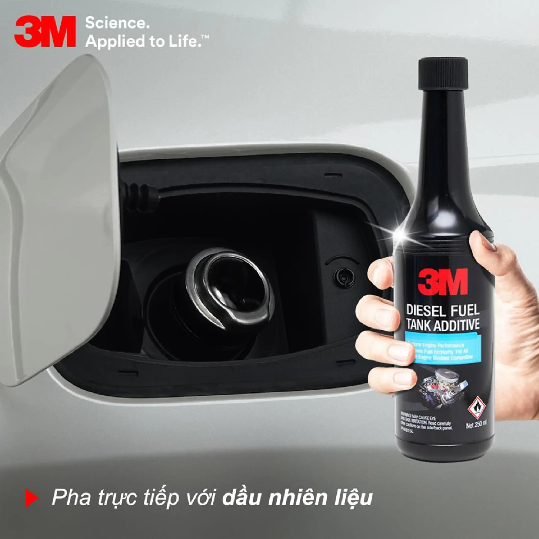 – Pha trực tiếp với dầu nhiên liệu – Một bình 3M Diesel Tank Additive PN08815L – 250ml pha với 75 lit dầu